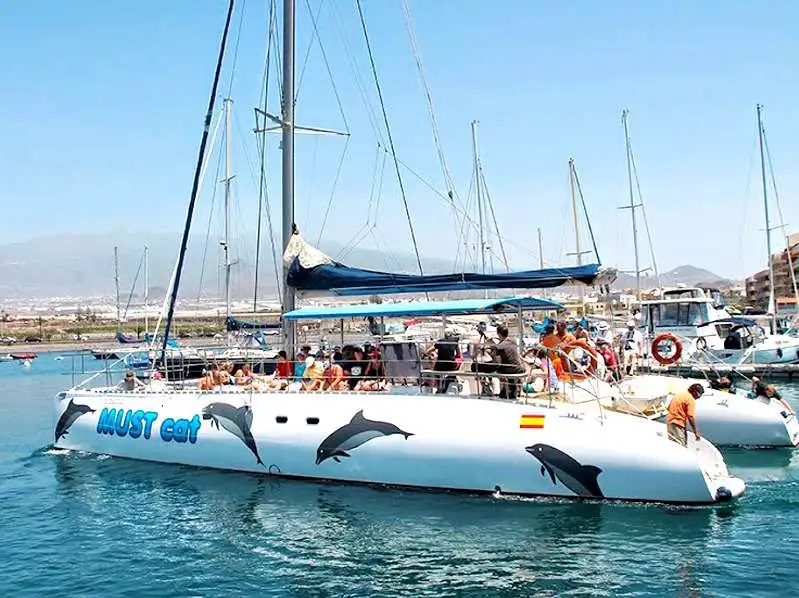 Con una capacidad máxima de 70 pasajeros, Mustcat Catamarán es una de las embarcaciones de lujo más solicitadas del sur de Tenerife para el avistamiento de cetáceos.