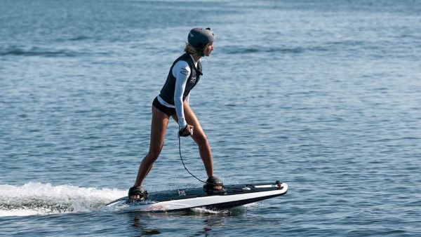 La experiencia más de moda en deportes acuáticos. Es fácil de aprender y divertido. Este ingenioso y simple aparato utiliza un potente motor de una moto de agua. El chorro de agua recorre de una larga manguera que se conecta a un par de botas y estabilizadores de mano.