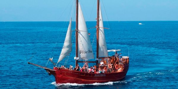 Este barco que parece un barco pirata es una auténtica goleta portuguesa. A bordo de este barco pirata se sentirá como si retrocediera en el tiempo y reviviera las emociones de la antigua navegación mientras disfruta de las aguas de Tenerife viendo la fauna marina de nuestra isla.